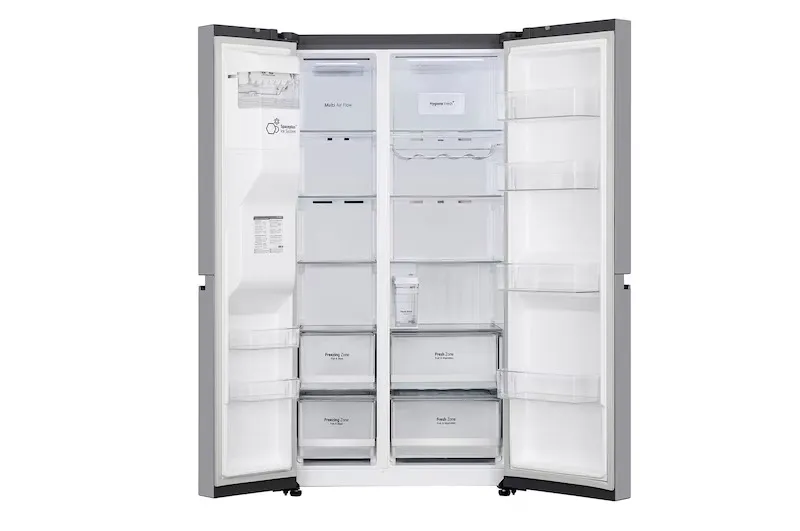 The LG GL-L257CPZ3 630 L Side-by-Side Refrigerator is engineered for large households that require high-capacity storage, long-lasting freshness, and smart technology. Equipped with a Smart Inverter Compressor (BLDC), it ensures efficient cooling, reduced noise, and enhanced durability while maintaining low annual consumption for a refrigerator of its size.