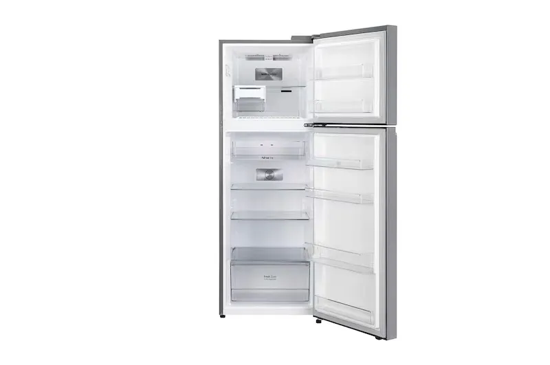 The LG GL-N342SDSY refrigerator combines high-capacity storage with efficient cooling technology in a sleek Dazzle Steel design. With a total capacity of 322 liters, including 241 liters for the refrigerator and 81 liters for the freezer, this model is well-suited for families that require ample and organized food storage.