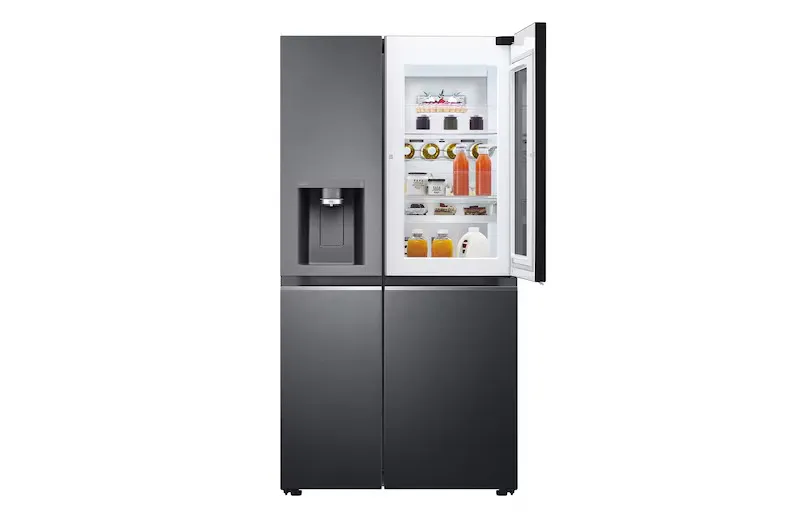 The LG GL-X257AMC3 630L InstaView Side-By-Side Refrigerator combines luxury design with smart cooling. Featuring InstaView Door-in-Door, Door Cooling+â„¢, and a Smart Inverter Compressor, it delivers spacious storage, advanced hygiene, and effortless convenience in a striking Matte Black finish.