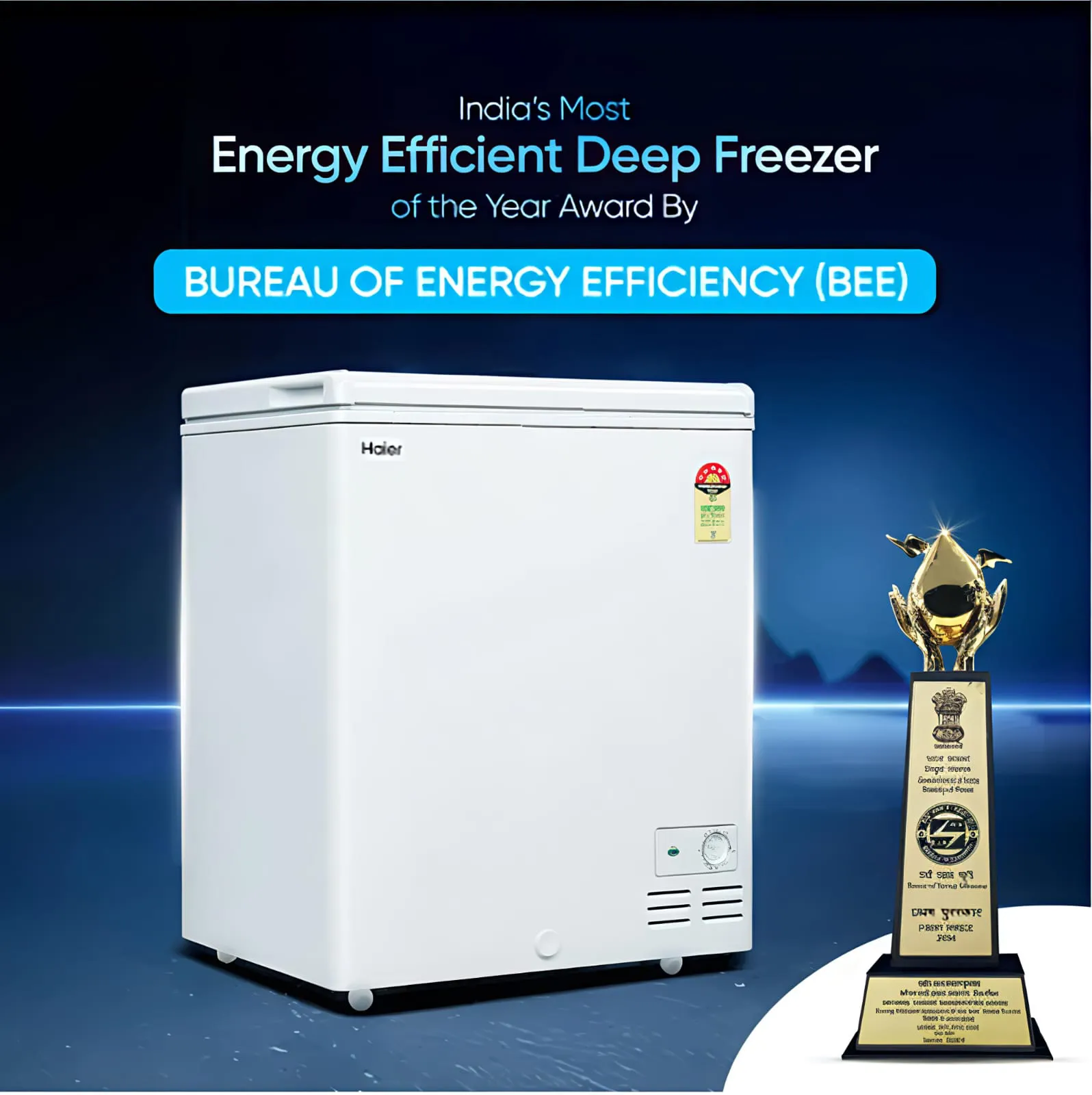 Haier 230L 5-Star Hard Top Freezer – energy-efficient and durable with a static cooling system, embossed PCM liner, and wide temperature range from +10°C to -26°C. Ideal for reliable long-term storage with strong build and smooth castor mobility.