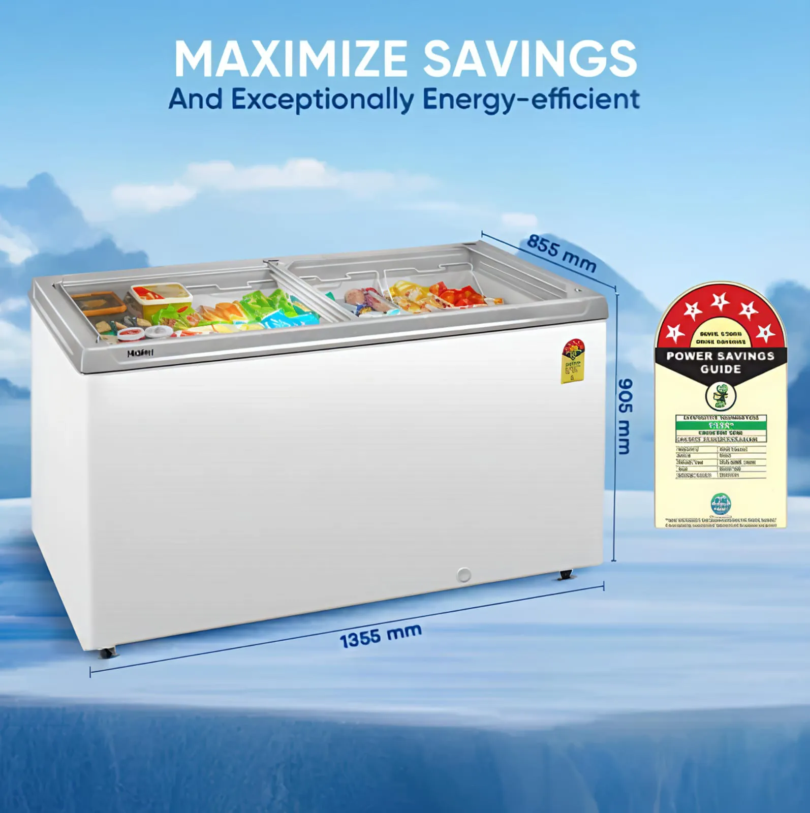 Haier 400L 5 Star Flat Glass Top Freezer combines high energy efficiency with elegant design, featuring dual glass sliding doors, static cooling, and a spacious 340L net capacity — ideal for commercial storage and display.