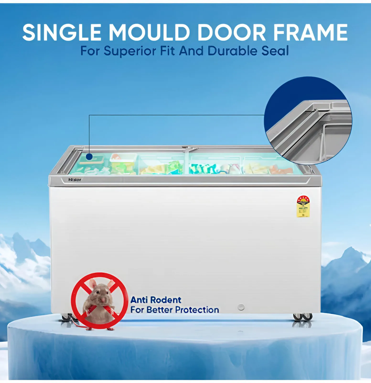 The Haier 400L 5 Star Flat Glass Top Freezer offers the perfect blend of performance, efficiency, and display convenience. Designed with a stylish flat glass top, it provides clear visibility and easy access to stored items — making it ideal for retail stores, restaurants, and large households. With a 5-star energy rating, it ensures maximum cooling with minimal power consumption. The freezer features static cooling with a robust skin evaporator and dual condensers (static + auxiliary) for uniform temperature distribution. Equipped with three storage baskets, four castor wheels for mobility, and eco-friendly R290a refrigerant, this freezer delivers long-lasting performance with sustainability in mind.