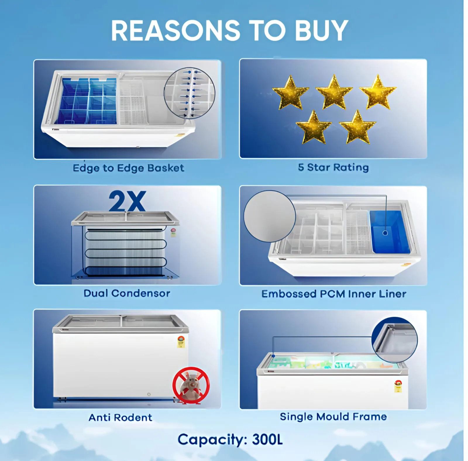 Efficient and durable, this 500L 5-Star Hard Top Freezer offers superior cooling performance with dual condensers and a wide temperature range from +10°C to -26°C. Built with an embossed PCM inner liner for lasting durability and energy efficiency, it ensures optimal storage for all your frozen essentials.