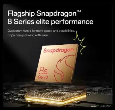 A powerful 5G smartphone with 12 GB RAM, 256 GB internal storage, a large 6.74-inch 120 Hz AMOLED display, capable cameras, long battery life with fast charging support, and a sleek Dry Ice finish — ideal for daily use, multimedia, and gaming.
