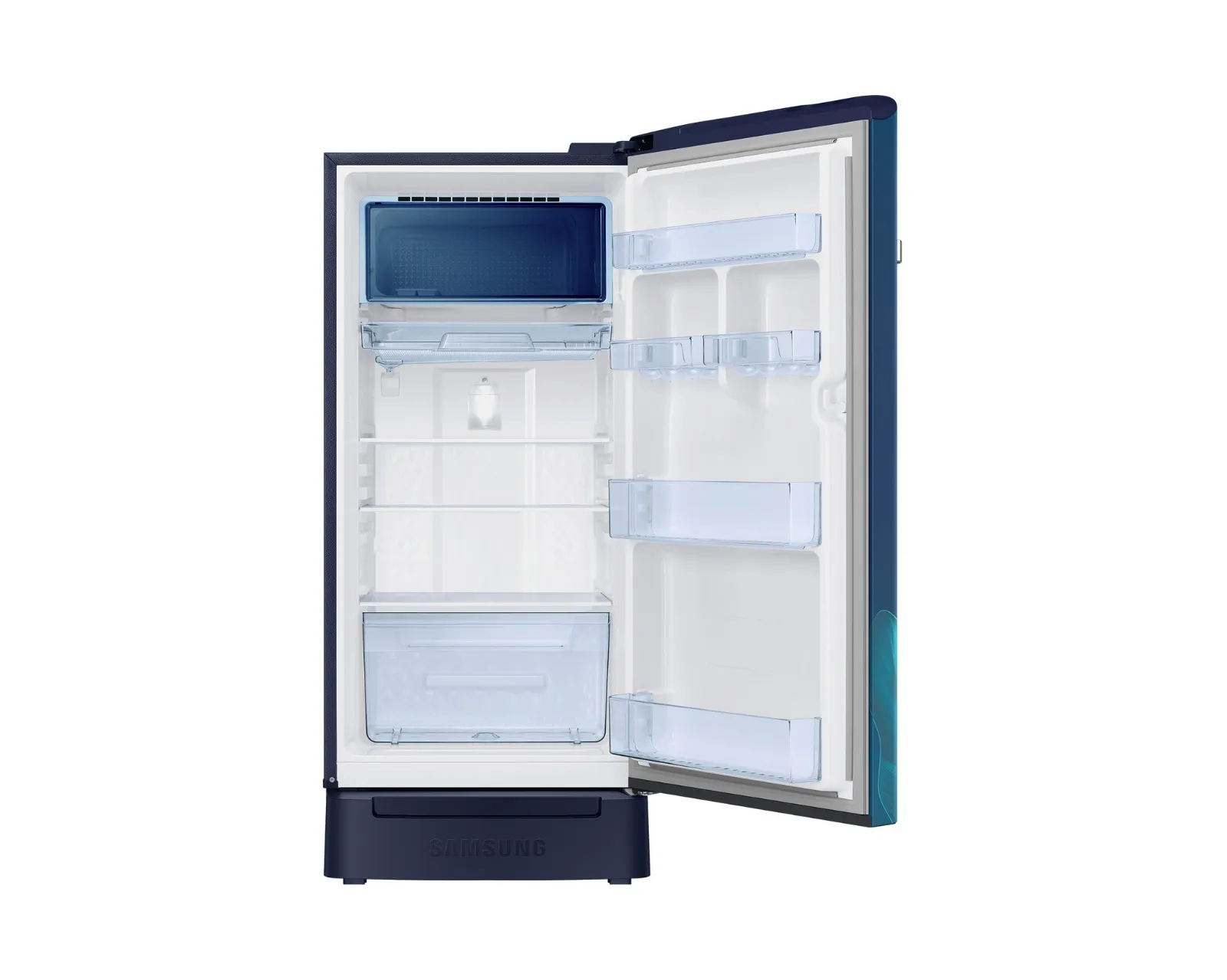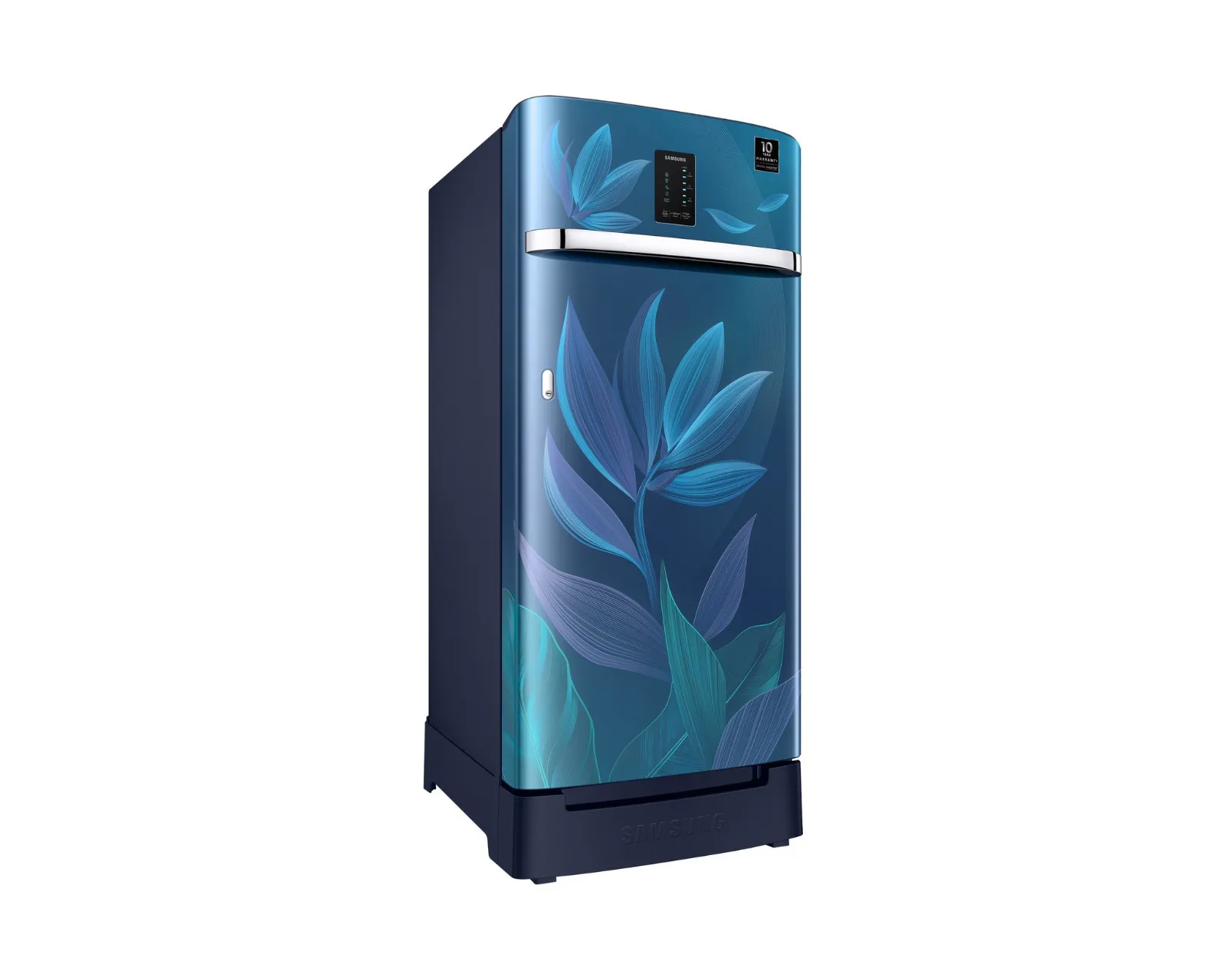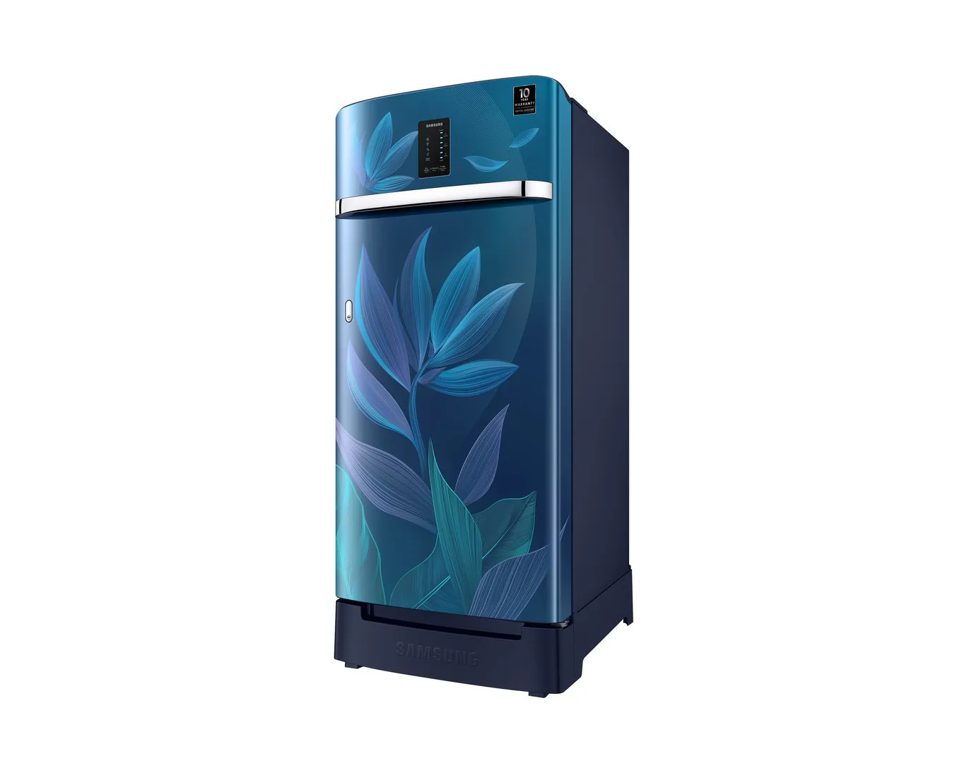 This 189 L Direct Cool single-door refrigerator offers efficient cooling with a beautiful Paradise Bloom Blue design. Featuring a Digital Inverter Compressor, sturdy glass shelves, LED lighting, and a convenient base stand drawer, it fits smartly into compact kitchens.