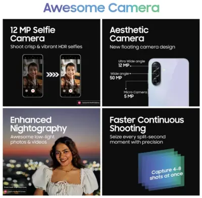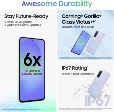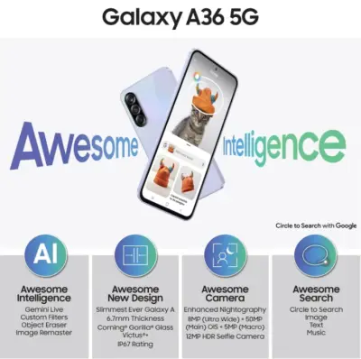 Under the hood, a capable 5G-ready chipset paired with 8 GB of RAM and 256 GB of storage ensures smooth performance for daily apps, multitasking, and media. The camera system on the A36 5G includes a high-resolution main camera for detailed shots, along with supporting sensors for depth and wide-angle photography. A capable front camera makes selfies and video calls clear and vibrant.