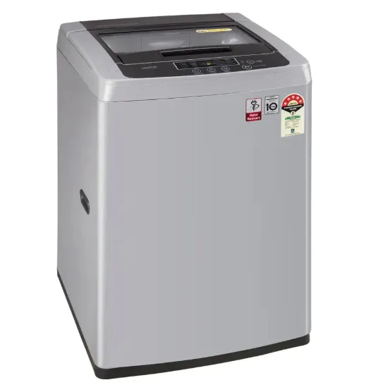 The LG 6.5 kg 5-Star Fully Automatic Top Load Washing Machine (T65SKSF4Z) combines compact design with high-end performance. Equipped with Smart Inverter Technology, it offers whisper-quiet operation and significant energy savings. The TurboDrumâ„¢ ensures deep cleaning of tough stains through a dual-rotation mechanism, while the Smart Diagnosisâ„¢ feature allows for instant troubleshooting via your smartphone. Finished in a sleek Middle Free Silver, it is as stylish as it is functional.