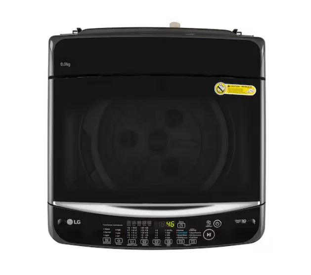 The LG T80AJMB1Z is designed to tackle heavy laundry loads with ease. It is powered by a Smart Inverter Motor that adjusts energy consumption based on the load, significantly reducing vibration and noise. The TurboDrum system allows the drum and the pulsator to rotate in opposite directions, creating a powerful water action that removes tough stains without causing wear and tear on clothes.