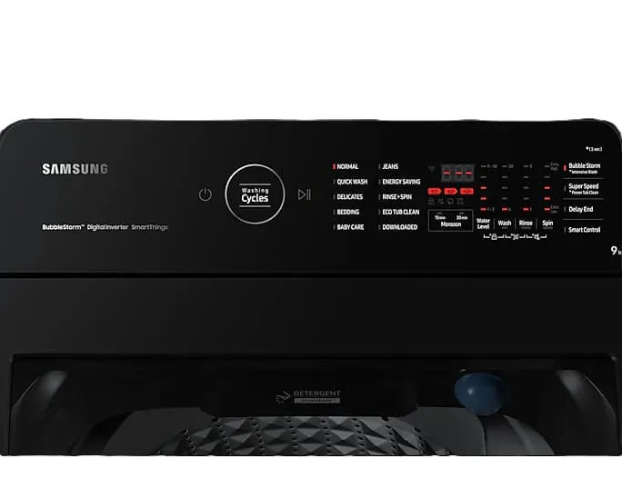 The Samsung WA90BG4546BV top load washing machine combines intelligent washing performance with smart convenience. Its EcoBubbleâ„¢ technology turns detergent into powerful bubbles, allowing deep fabric penetration even in low water levels for effective cleaning while protecting clothes.
