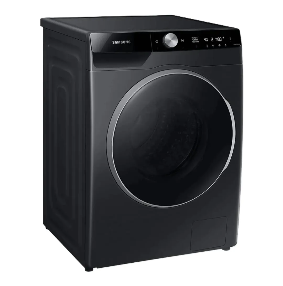 The Samsung WD12TP44DSB/TL is a premium 12 kg wash / 8 kg dry Inverter Fully Automatic Front Load Washer Dryer with AI-powered control, Wi-Fi SmartThings connectivity, and advanced cleaning technologies — designed for large families and effortless laundry care.