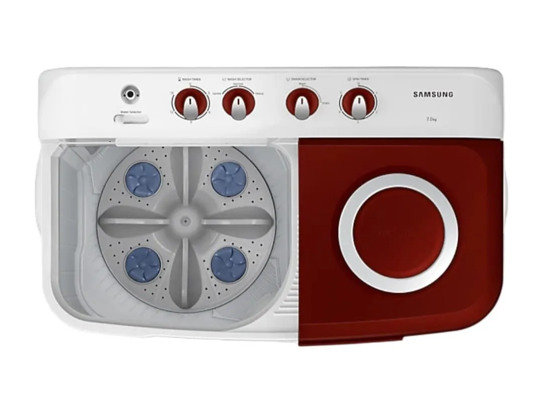 The Samsung WT70M3000HP is a 7.0 kg semi-automatic top-load washing machine with a Double Storm Pulsator that delivers powerful and thorough cleaning while remaining economical and easy to use — ideal for small to medium families.