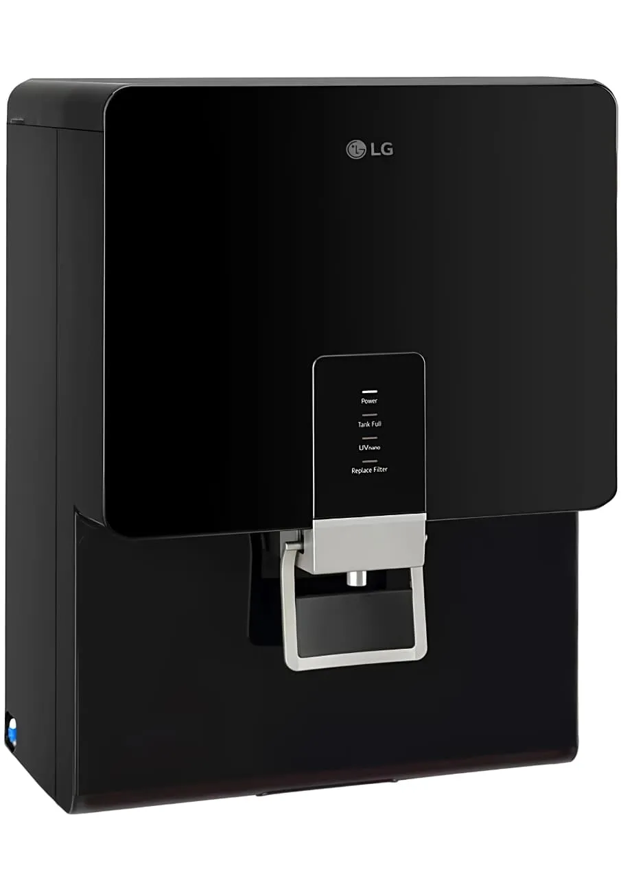 The LG 8 L RO Water Purifier WW136RPNB is engineered to provide reliable and hygienic drinking water for Indian households. At its core is an advanced multi-stage True RO (Reverse Osmosis) filtration system that effectively removes dissolved impurities, heavy metals, bacteria, and other contaminants, making water safe and clean. Purified water is stored in a Dual Protection Stainless Steel Tank that resists bacterial growth, preserves freshness longer than plastic tanks, and comes with extended tank warranty coverage.