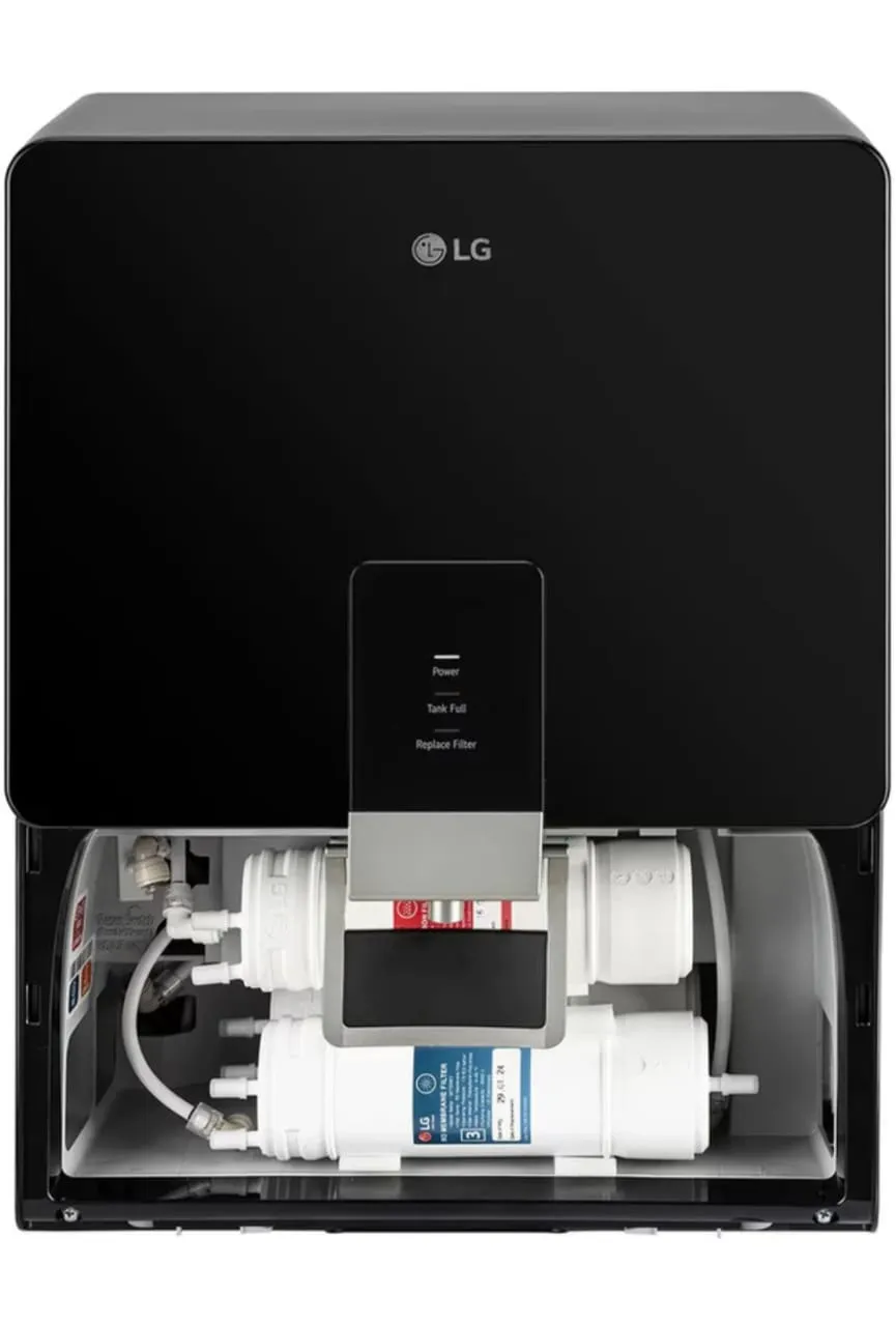 The LG 8 L RO Water Purifier WW136RPNB is a compact wall-mounted water purifier with True RO multi-stage filtration, a dual-protection stainless steel storage tank, digital sterilizing care, and smart indicators for filter changes and tank status — delivering safe, fresh drinking water for everyday home use. Key features include automatic shut-off, change-filter indicator, water-saver technology, and a leak-proof design.