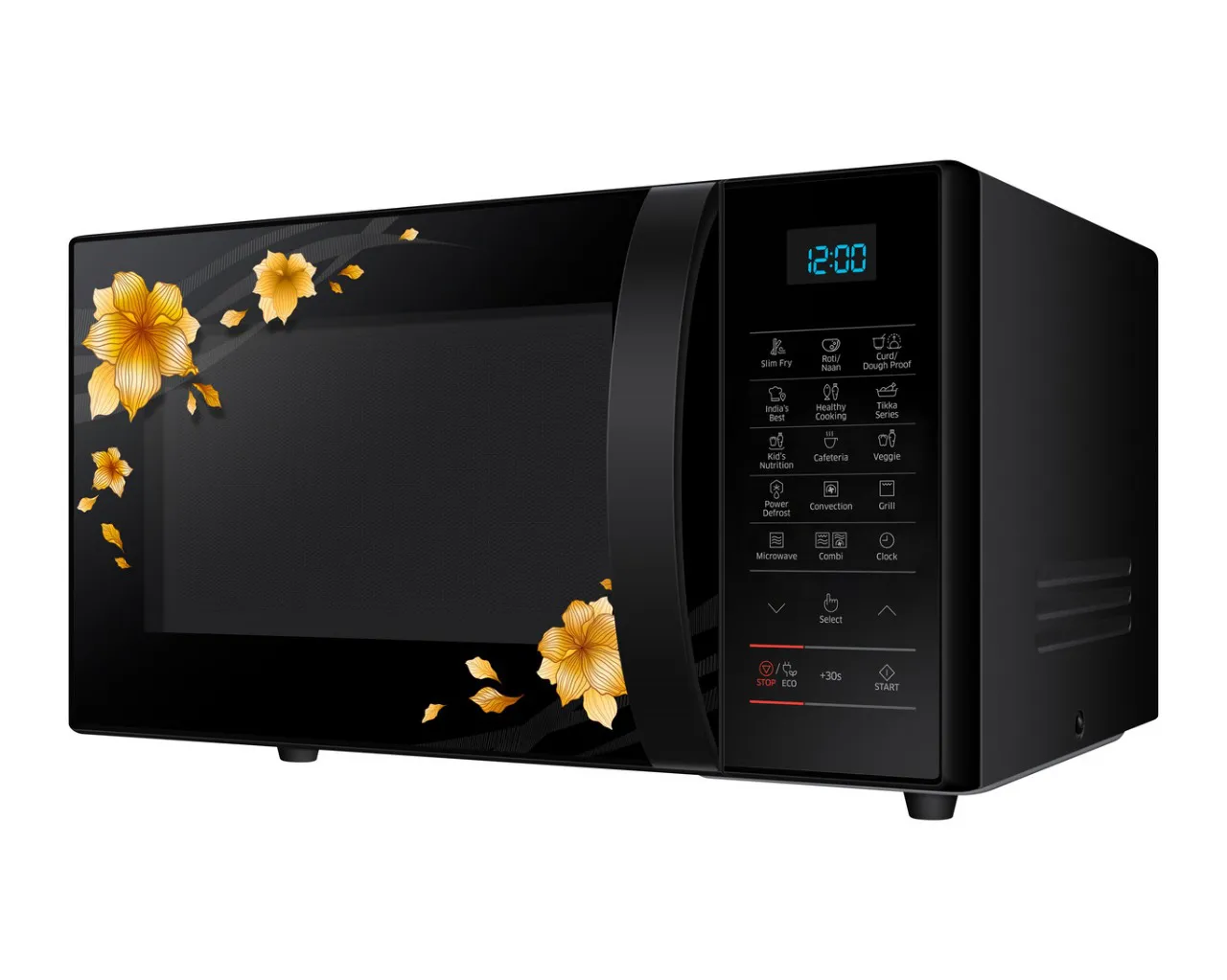 The Samsung 21L Convection Microwave Oven brings healthier cooking home with Slim Fryâ„¢ technology, Tandoor mode for perfect rotis, and a durable Ceramic Enamel cavity. With features like curd-making, auto-cook menus, a crusty plate for crisp reheating, and multiple cooking modes, it's ideal for small families seeking versatility and convenience.