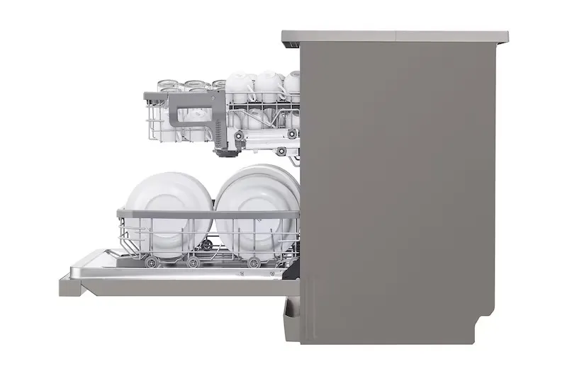 The LG DFB424FP Dishwasher in Platinum Silver 3 offers powerful TrueSteamâ„¢ cleaning, QuadWashâ„¢ multi-angle spraying, and Smart Rack+â„¢ flexibility. With Wi-Fi ThinQ connectivity, quiet 44 dBA operation, and 14 place settings, it delivers spotless, hygienic results with modern convenience and premium style.