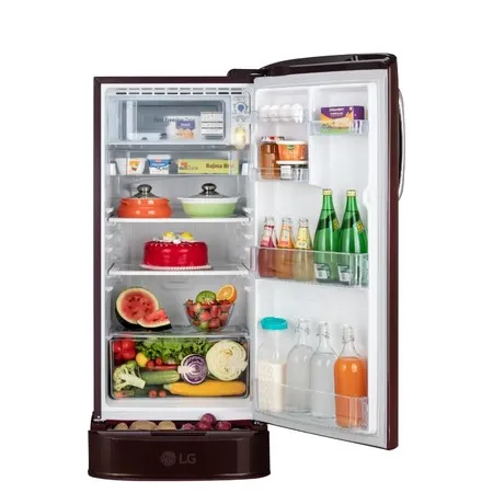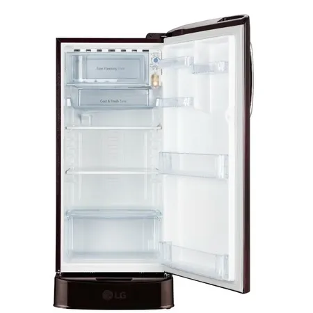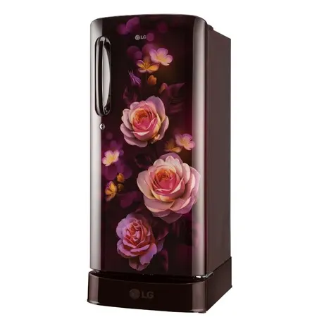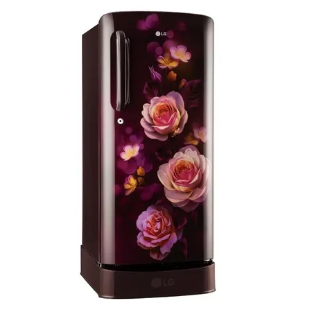 The LG GL-D201ASBU 185 L 5-Star Single Door Refrigerator delivers powerful cooling with a Smart Inverter Compressor, toughened glass shelves, stabilizer-free operation, and a spacious vegetable drawer. Designed in a stylish Scarlet Bloom finish, it offers energy-efficient performance and practical storage for modern households.