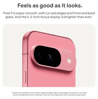 The Google Pixel 9 (Peony, 256GB) is a premium Android smartphone powered by the Google Tensor G4 processor with 12GB RAM. It features a 6.3-inch OLED Actua display with 120 Hz refresh rate, a 50MP + 48MP dual-camera system, and a 4700 mAh battery, delivering powerful AI features, smooth performance, and excellent photography.