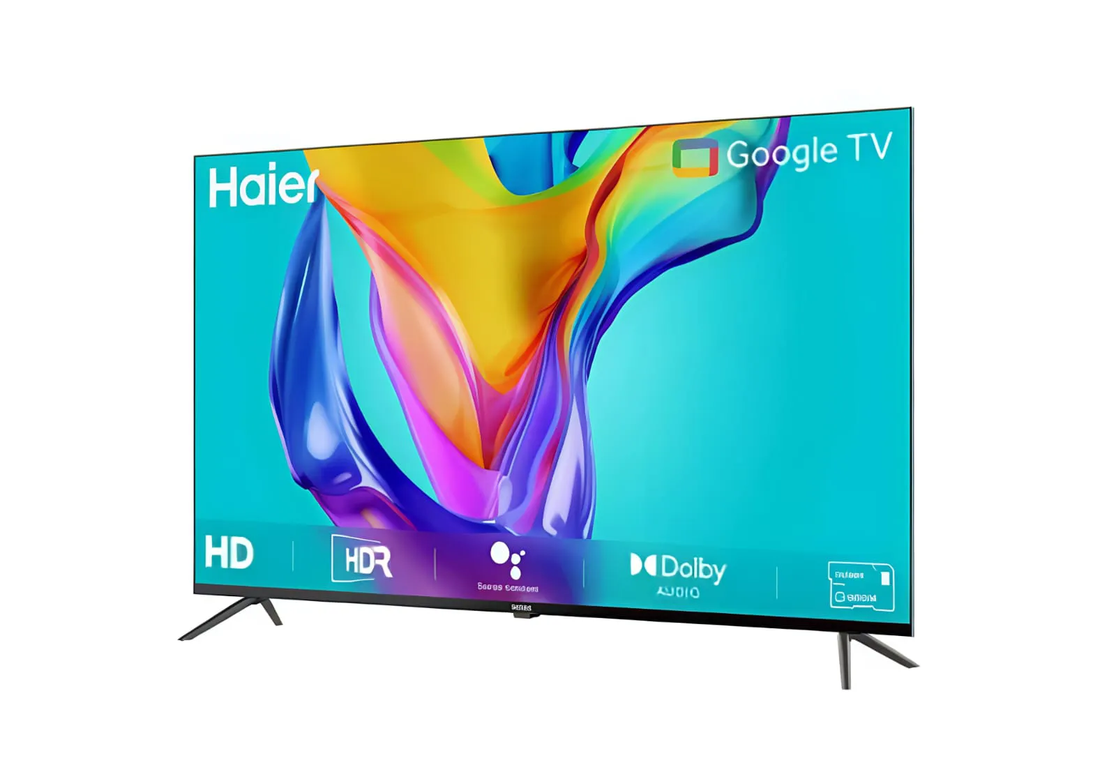 Haier HD Ready Smart LED TV – Experience vivid HD visuals with HDR10 and immersive Dolby Audio sound. Powered by Google TV with built-in Google Assistant, Bluetooth, and MEMC for smooth motion