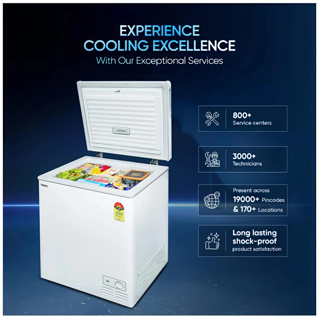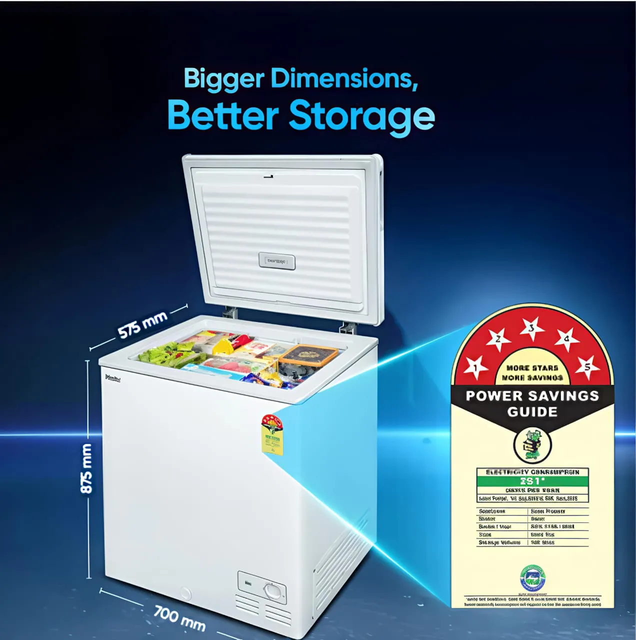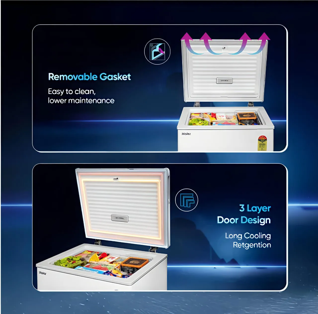 Haier 175L 5-Star Hard Top Freezer delivers powerful cooling with energy efficiency. With a temperature range from +10°C to -26°C, durable build, and eco-friendly R600a refrigerant, it’s perfect for both home and commercial use.
