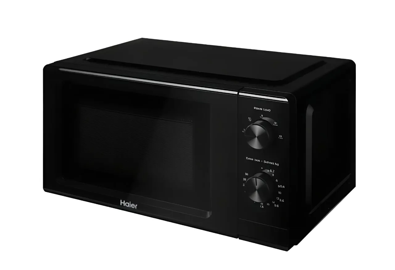 Haier 19L Solo Microwave Oven – A compact, energy-efficient oven with 700W power, epoxy-coated cavity, and defrost function. Perfect for quick heating, cooking, and reheating with low noise and modern design.