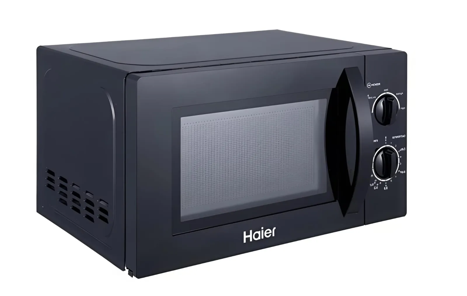 Haier 20L Solo Microwave in elegant black offers efficient cooking with 700W power, compact design, and easy functionality—perfect for everyday heating and defrosting needs.