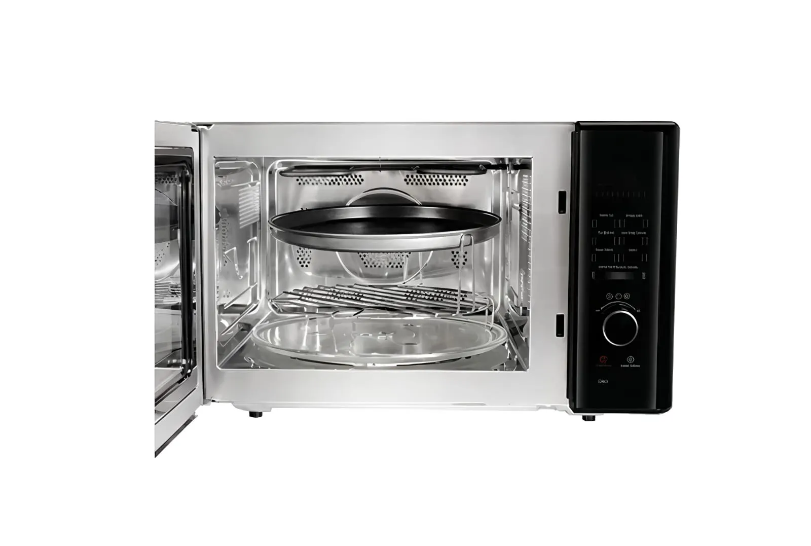 Haier 30L Convection Microwave  with stainless steel cavity offers versatile cooking with 400 auto cook menus, dual combination functions, and multiple power levels. It includes advanced features like Bread Basket, Home Fry, Paneer/Ghee/Curd making, and Child Safety Lock — perfect for modern kitchens.