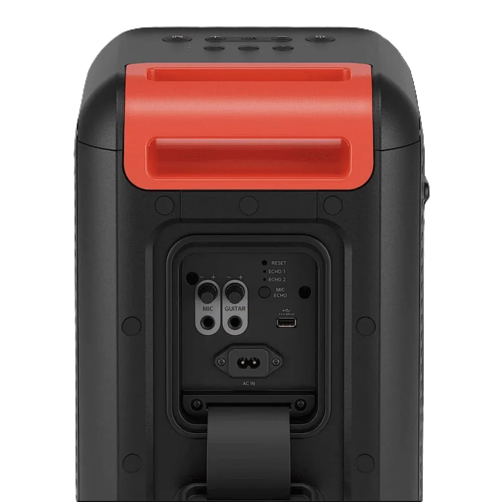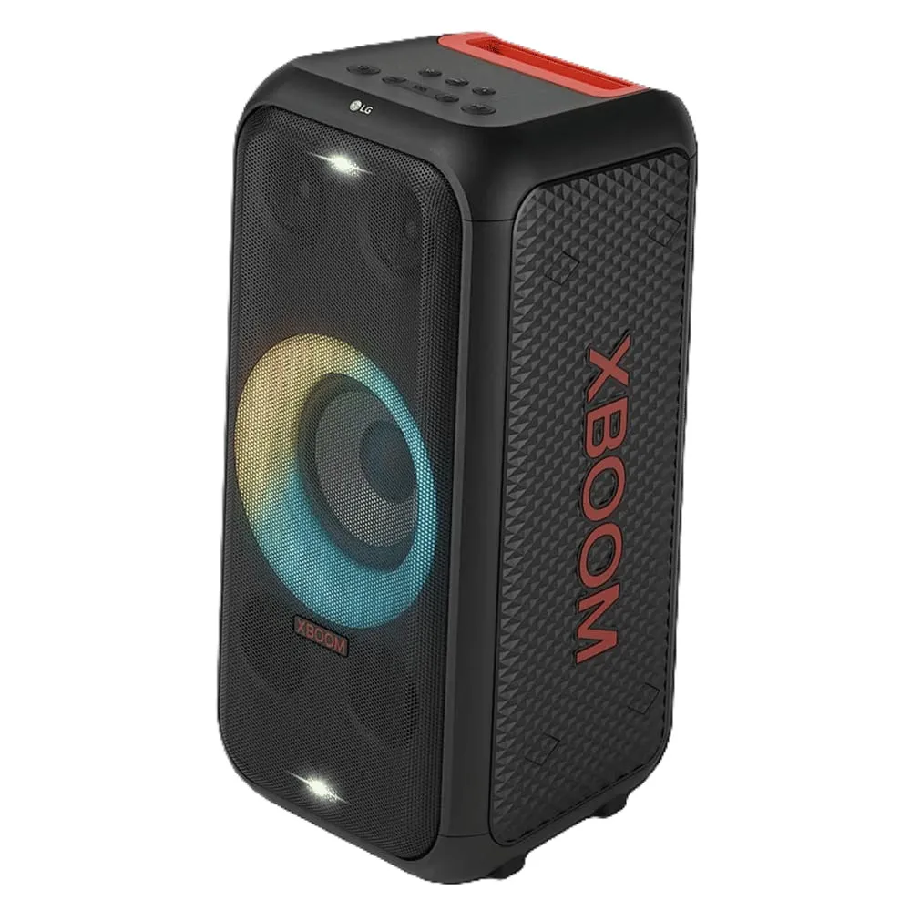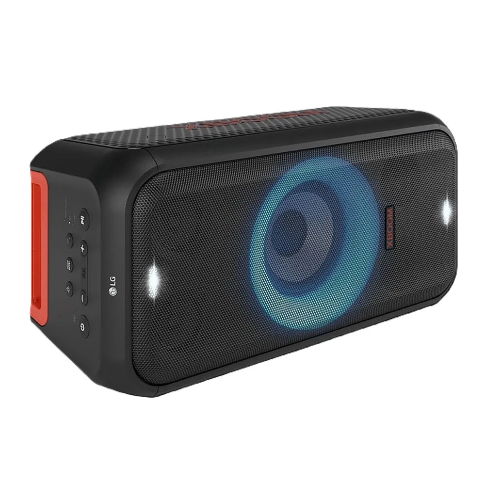 The LG XL5S is a powerful 200W 2.1-channel party speaker designed for immersive sound, deep bass, and vibrant lighting effects. With Bluetooth, USB, Guitar In, and Mic In connectivity, plus 12 hours of battery life and IPX4 water resistance, it’s built for music, parties, and outdoor fun